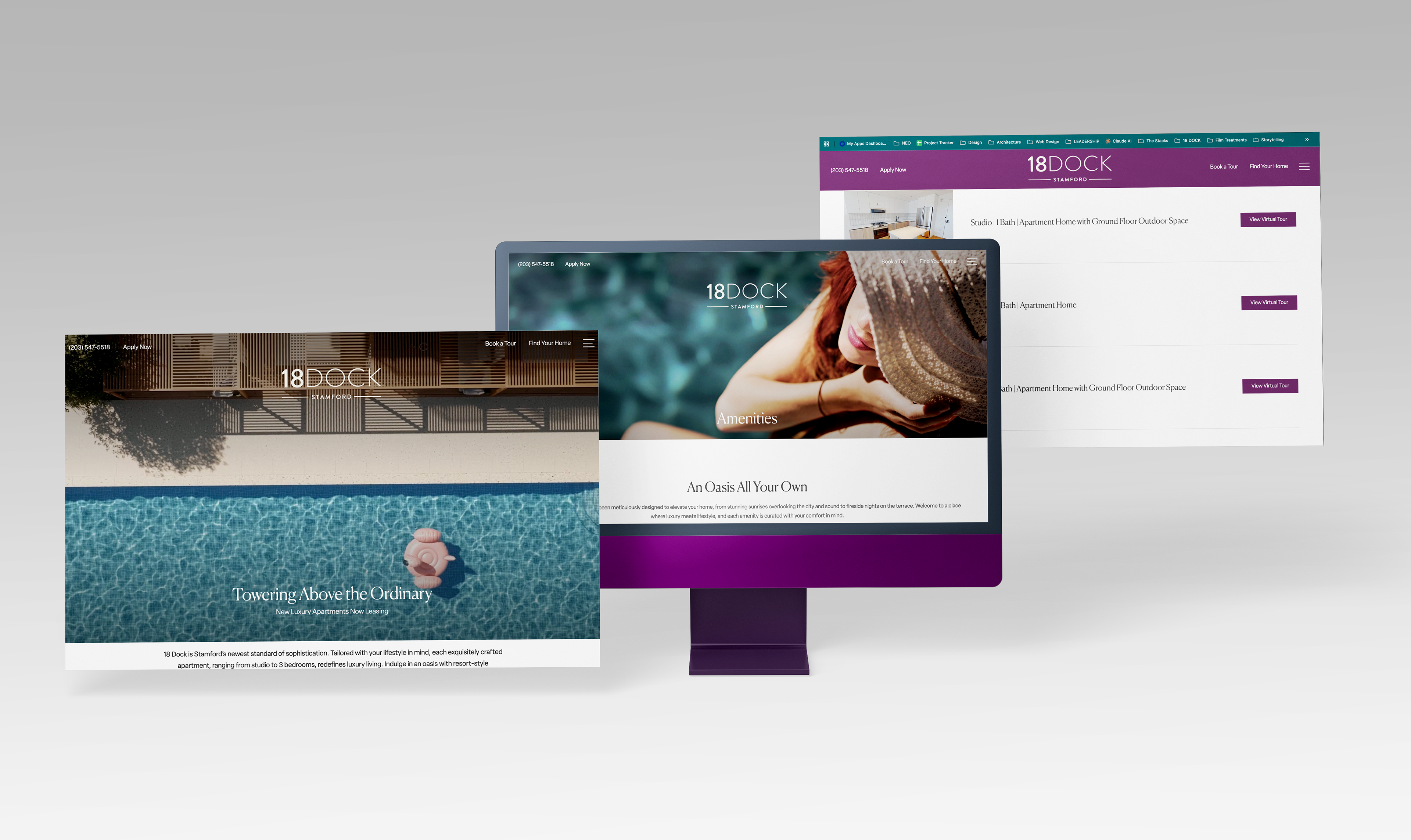 18 Dock is a luxury mixed-use development featuring two towers in Stamford's South End with an oversized amenity level and panoramic views of the Sound. Located minutes from MetroNorth with convenient NYC access, the project needed to differentiate itself in a competitive residential market within the rapidly transforming neighborhood.